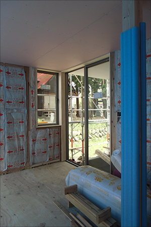 2年前。施主様の知人が当社で新築。その時に完成見学会でお会いしたのが始まりです。庭に面した大きな窓が特徴の、ご夫婦と男の子2人・4人家族の28坪の住まい。床には傷になりにくいナラの無垢材。家具や建具は木目がきれいなタモ材をつかったのびやかな印象の住まいの見学会に「こんな感じいいね。居心地がよくって、何時間でも過ごせそう。木の匂いも好きかな。」と気に入っていただいた様子。その後ご家族が一番不安に感じている【住宅取得資金や返済方法、適正価格】などなど。時間をかけて急がずゆっくりと話し合いを重ねていきました。