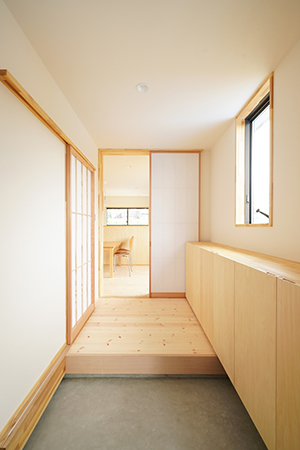 LDKと庭につながる和室コーナーは扉を閉めれば、急なお客さん用の客間、時にはごろっと昼寝をしたりできます。また、庭でガーデニングやBBQをする家族と自然に会話が生まれます。わずか3帖の空間ですが、広さ以上のメリットがあります。資金の事、ご家族がどんな暮らしをしたいか、などをじっくり話し合って、土地を探し、設計をしていきました。