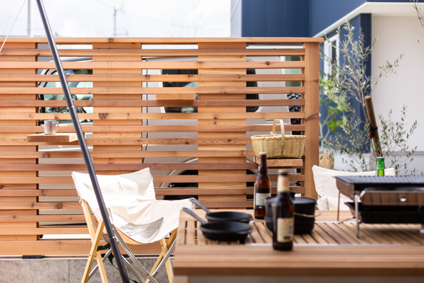 - BBQをしたり、子ども達がのびのび遊ぶ。ウッドデッキからつながるアウトドアリビング