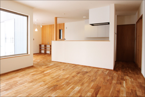 どこにいても、どんなことをしていても、笑い声や会話が聞こえてくる家族をつなぐLDKが完成しました。床にはナラの無垢フローリングを使うことにより、家族みんなが気持ちよく過ごせる場に仕上がっています。