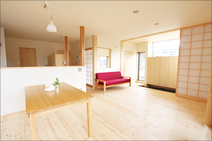 施主様が家に望まれたことは、「バーベキューや家庭菜園の道具を片付ける収納スペースの確保」、「収穫した野菜を置く食品庫」など室内に持ち込まない物を入れる大きな収納。他にもリビングに接した和室。「普段はリビングの一部としても使い、友人や親御さんが来られたときには客間としても使える和室にしたい。」「リビングを通らずに玄関から直接和室に通したい。」この2点が施主様のご要望でした。そして暮らしのイメージは、「一戸建てに住んだら、アパートではできなかった家庭菜園やバーベキューを楽しんで、自然に触れ合いながら家族のだんらんの時間を増やしたい」という夢をお持ちでした。
