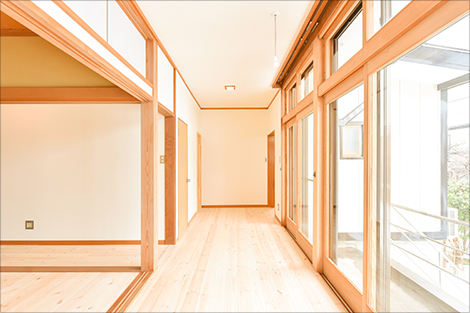 ご夫婦と子どもたちの5人家族で住み継ぐことになりました。こだわりと趣のある和室を2間残し、他の和室は洋室へ変更。廊下を挟んでいても仲の良い家族が会話できるように、間取りを工夫しました。個室としても使用でき、場合によっては40帖の大きな空間としても活用できます。開口部は結露を発生させない樹脂サッシに変更し、明るさも通気も確保しながら断熱性能も高めました。床下の断熱性も強化し、四季を通して住み心地の良い住宅になりました。さらに現代の暮らしに合わせ、奥様がお掃除しやすく使いやすいよう、水回りの設備機器はすべて新しく入れ替えました。他にも基礎、屋根、外壁などの劣化対策を施し、メンテナンスの少ない住み心地の良い暮らしへ向上させています。