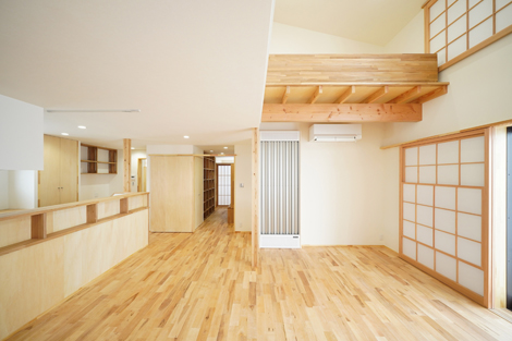 LDK吹き抜け、自然、絶妙なつながりがみんなの居心地を良くする