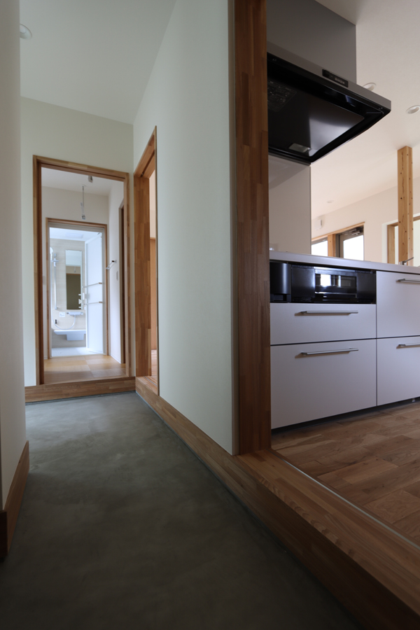 キッチンは家族の気配を感じながら料理に集中できるよう、収納をしっかり設けたオープンな形に。大容量のパントリーは土間でつくりました。涼しい空間は土のついた新鮮な野菜やお米の保存にも最適です。キッチンやダイニングへも直接いけるよう、扉を設けました。使い方を限定せず、誰が使っても使いやすいよう工夫しています。パントリーから続く、勝手口のスペースでは毎年恒例のお餅つきの際もち米をたっぷり炊いたり、お漬物用に野菜を洗ったり、以前大切にしていた家族の行事も短い動線で行えるようにしました。