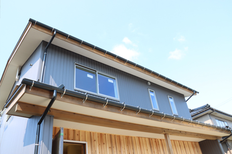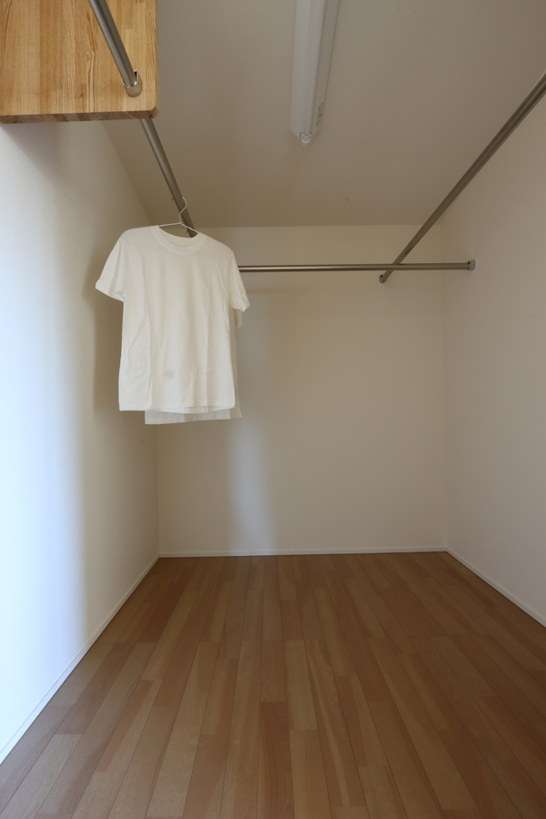 2階には家族みんなで使える大きな収納を作りました。季節ものや日々の使用頻度の低い物もたっぷり収納できます。個室には適材適所の収納も設け、お子様の成長や生活の変化にも対応できます。お施主様が生まれ育った自然豊な弥彦の街並みに溶け込み、味わいが増していくように外壁に杉板を使用しました。