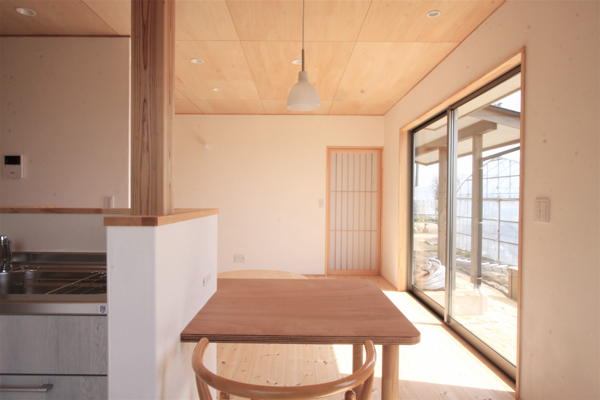 配膳が楽な位置に手づくりのダイニングテーブルを配置しました。食事の時間も家族の大事な時間と考えます。今日1日の嬉しいことや悩みごとを話す時間。ちょっとしたことなのかもしれませんが、忙しい毎日の中でこの時間はお子様だけではなく、ご夫婦やご兄弟、家族にとってホッとできる大切な時間です。
