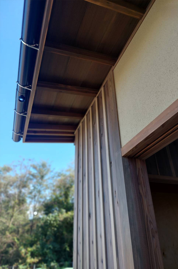 家の中で1番手が触れる所はどこでしょう?実は建具(戸・障子・襖)です。日々暮らす中で、触れることが多い場所は心地よい素材が良いですよね。建具には古建具を一部使用しました。時代建具と言われるほど手仕事の繊細な美しい痕跡が残り、生きている時間が長い建具です。一点ものをお施主様と一緒に選びに行きました。ひとつひとつを選ぶことでより愛着が増します。また落ち着いてのんびりと過ごせるように床だけではなく、天井にもあたたかみのある無垢材をたっぷり使い、仕上げました。そして天井はあえて高さを抑えました。心地よい素材を近くに感じ、大きな窓を設けることで圧倒的な広がりを感じます。