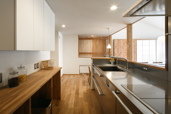 安らぎと癒しの場所である自宅は毎日の忙しさから解放され、家族や自分自身と向き合う時間をくれます。そんな場所をつくる為、お施主様と相談を重ねました。「広々としたくつろぎの場がほしい」そのご要望には、広さの他に2つの中庭をおすすめしました。中庭は自然光を室内に取り混むと共に、風を通し、家全体に解放感を与える役割を果たします。視線が抜けていく窓の工夫は、ひろがりを感じ家族のコミュニケーションをより一層豊かにしてくれます。