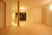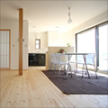 通常、家の間取りを考える場合、明るい南面にリビングを配置するのが一般的です。しかし、周囲の環境を考え、あえて東面に大きな窓を設けることで、リビングに光と風が差し込み、L型のキッチンは、奥様の明るいワークスペースになります。2階には、物干場や物入れを確保し、和室と子供室にも、大きな収納スペースを設けています。お施主様は、まだお子様が一人のため、6帖の洋室は将来の家族構成によって「子供室」にも「書斎」にも使えます。