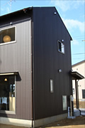 外観は、環境になじんだ飽きの来ないシンプルでモダンな表情を演出した建物です。外壁にはガルバリウム鋼板を使い、シャープな印象を与えると同時に「雪国の寒さに強い」という特性を活かしています。また、建物内に外部収納を組み込み、敷地に余裕を持たせています。