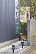 浴室の目隠しは、将来植栽を育てて浴室のサッシを開けて入浴しても大丈夫なように設計してあります。自転車置き場は、玄関アプローチ全体に屋根をかけてあるので楽々2台停めることができます。