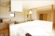 広々19.5帖のLDKは、奥様がじっくりと料理ができるキッチンスペースと家族がみんなでゆっくり食事ができるダイニングスペース。さらにお客様をお通しするリビングとの間には3枚の障子戸を設置。普段は家族の自然なコミュニケーションが取りやすいよう、そして、障子戸を開けてオープンな生活ができるように配慮しました。通常はひとつの空間でありながら、来客時にはプライバシーを保てるように工夫しています。例えば、「ソファに座りながらお子さん2人がキャッキャと笑ってテレビを見ている」「奥さんが得意料理を作りながら子供たちと会話している」「その傍らには、ダイニングに隣接した縁側で庭を眺め優雅な休日を過ごすご主人」そんな風景が自然に浮かんでくるLDKになりました。身心共にリフレッシュできる寝室はベッドではなく、お布団でお休みになるために畳を敷きました。一日頑張ってくれた身体を柔らかい畳の床が疲れを癒します。共働きのご夫妻にとって必須である内干しスペース。今回は少ないスペースを活用して設置しました。0.5帖のスペースでも毎日出るたくさんの洗濯物を乾かせます。生涯にわたって快適に過ごせる住まいが出来上がりました。