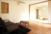 長男であるお施主様のご主人は、もしかすると親御さんとの同居も将来的には可能性があるという事から、親御さんの為に和室を造っておきたいとご要望がありました。しかし同居しなかった場合には開かずの間になってしまう可能性があると言う問題がありました。そこでリビングと和室を併設させて、さらに3帖のクローゼットを設けました。同居前は、建具を全開にしてリビングと一体の空間にして使用します。い草の心地よい香りがリビングにもひろがり、ご家族をリラックスさせてくれます。3帖の大きなクローゼットは子供が大好きなおもちゃや本などを収納し、親御さんを迎える時にはお布団や衣類の収納としても使えるよう設計しています。