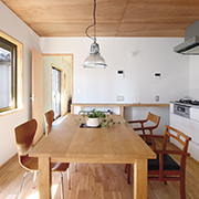 みんなが共有する場所がダイニングキッチン。ここでは家族の食事はもちろん、友人を招いて食事会や飲み会も出来れば、お母さんのお友達が集まってお茶のみの場所にもなります。