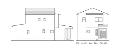 南側はバスが通るような大通り、東側は細い道に面した、一般的に不動産価値が高いといわれる「東南角地」です。しかし、間口といわれる道路に面した幅が狭く、前面道路の交通量が多いこの土地の場合、プライバシーの観点から南側にリビングスペースを確保する事が厳しい状況。そこで設計士が考えた逆転の発想は、なんと全ての居住空間を裏面の北側に配置し、さらに北側に広い庭を確保することでした。北側の日照は天候にあまり左右されず、安定してほのかな明るさで落ち着いた雰囲気をつくりだす事ができます。さらに、庭の向こうには将来ご両親の家が建つ予定なので、それぞれの小さな庭をひとつの大きい庭として利用することができます。それにより周りの視線を気にすることなく、プライバシーを確保しながら豊かな暮らしにつながる重要なスペースになります。
