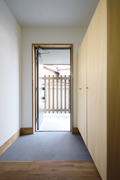玄関を開けたときに車や人の視線を防ぐことができるよう、ポーチには木製の格子を設けました。
