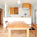 この家は江南区天野「天野エルカール」という街に、私たちのコンセプトハウスとして完成しました。この街のコンセプト『つながる街』に賛同し、「戸外でつながる」「住人同士で子供たちを見守る」「庭先で井戸端会議」「ご近所さんと豊かな時間を共有」これを実現できるLDKを考えました。キッチン〜ダイニング〜アウトドアリビング〜道路・公園、暮らしが外へと広がり、街とつながっていきます。