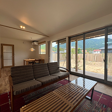 せっかく環境の良い場所に土地を購入しても、生活の中へ取り込むことができないともったいないですよね。風の通り道や光の取り入れ方、景色の取り入れ方を考えて、どの部屋にどんな窓が必要なのかを真剣に考えました。弥彦山が見える最高の景色を活かし、周辺の植物や花も部屋に取り込めるよう窓を設計しました。風や光が通り抜け、季節を感じながら暮らす事ができます。